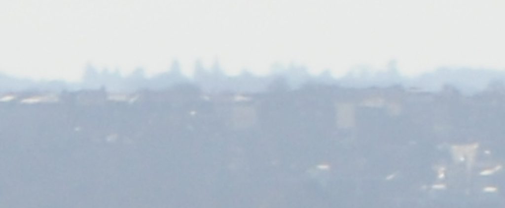 I have no idea what the shadows are on the distant horizon. I did wonder if it was Croydon, however checking on a map, and Croydon is further to the right, and following the line between the two masts from Fenchurch Street, there are no significant clusters of buildings, so I have idea what they are.