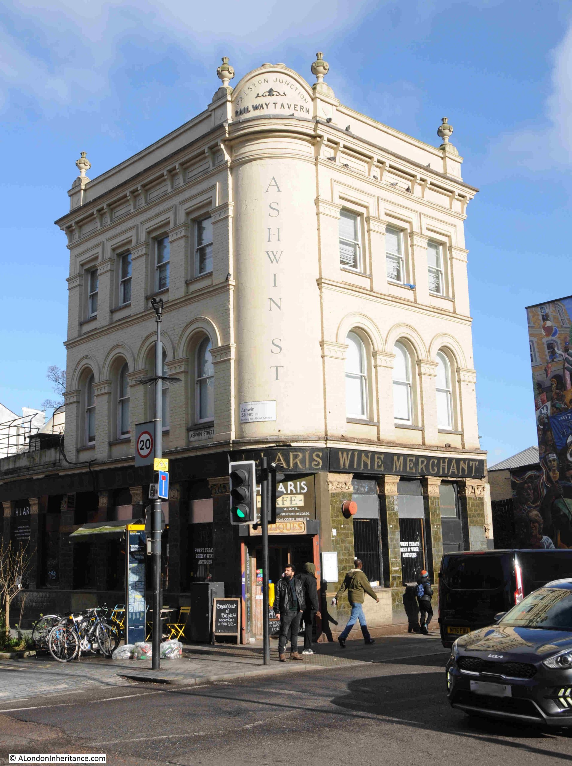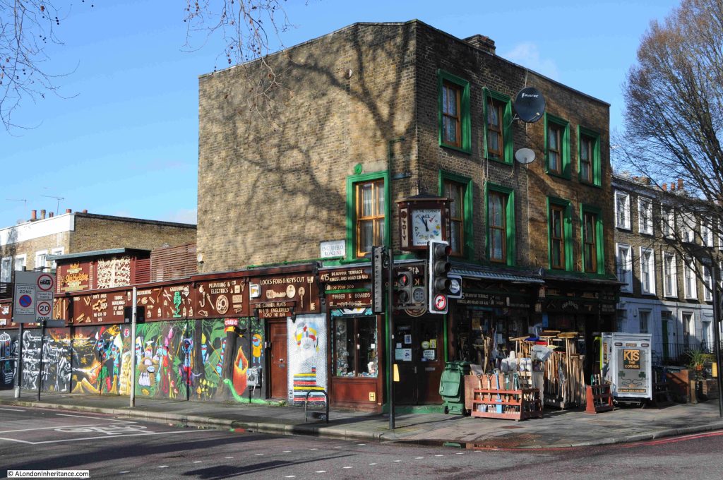 A slight detour down Dalston Lane from Kingsland Road is the old Railway Tavern, so named because it was almost opposite the original Dalston Junction station building, which has been rebuilt as part of a residential development.