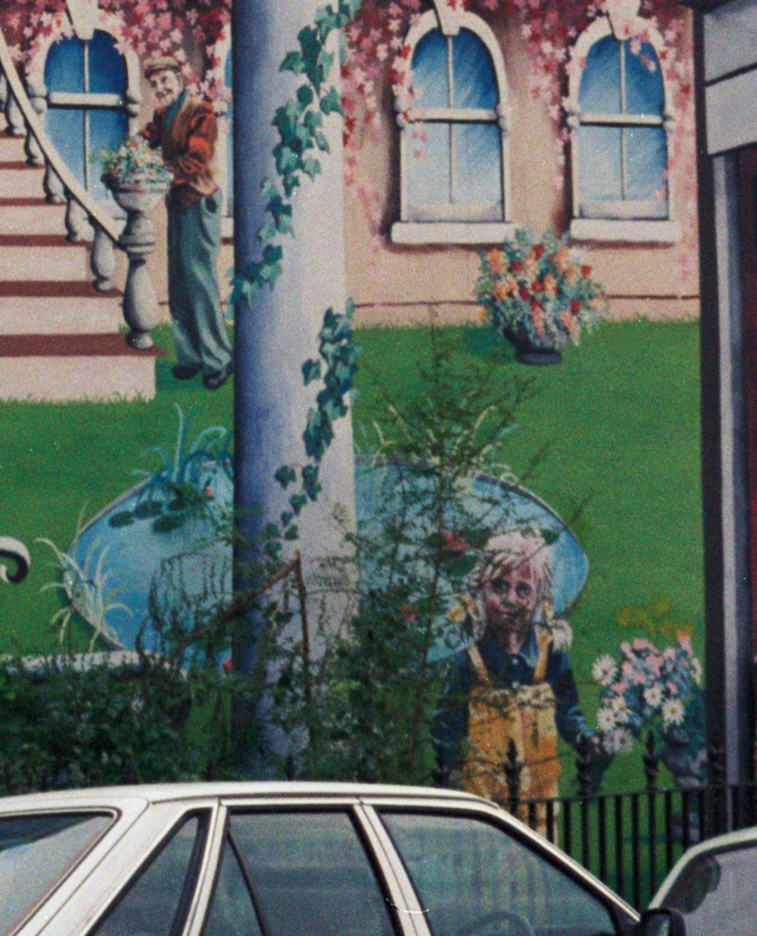 After forty years, the mural is faded, flaking and losing colour, but enough remains to show what it was like when created, as my father’s 198o’s photos confirm.