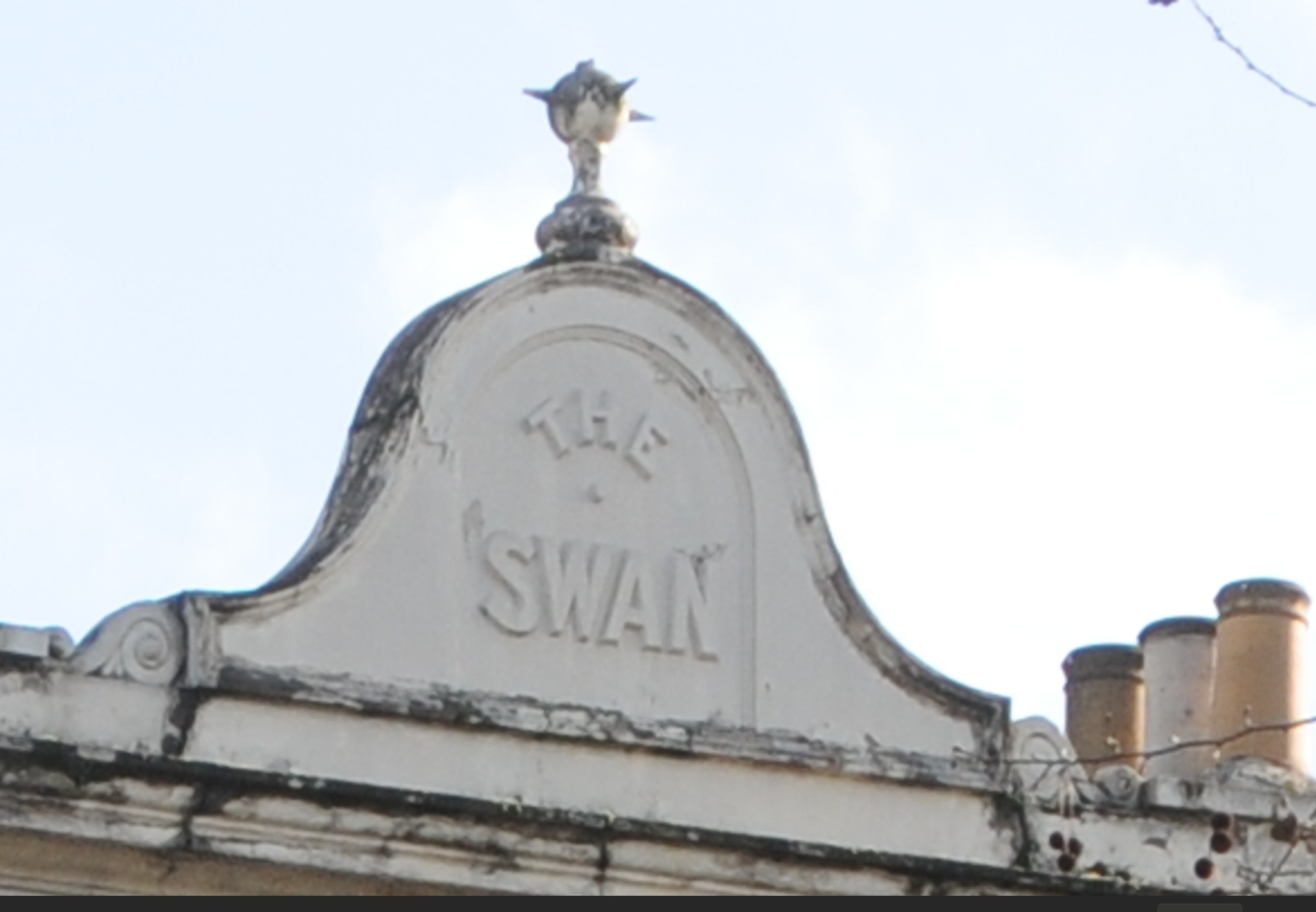 The current name of the pub dates from around 2009, and the original name of the pub was the Swan, as still displayed along the top of the building: