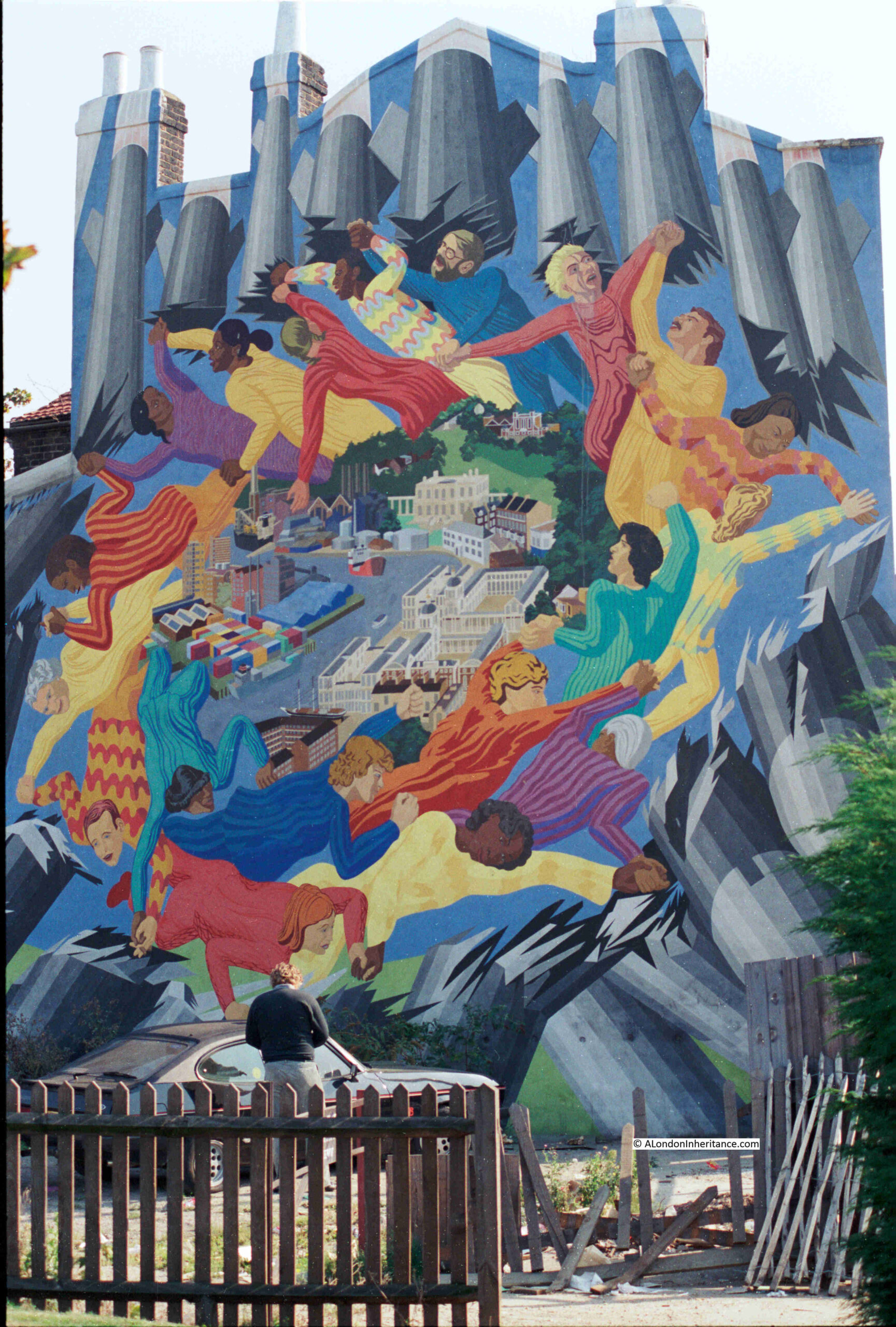 The 1980s seemed to be a prolific period for murals across the streets of London and GLC initiatives such as the 1983 Peace Year were responsible for a number of these, another of which was in Greenwich and was the Wind of Peace mural in Creek Road: