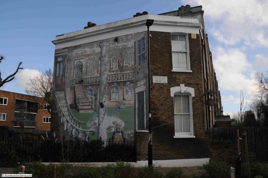 A couple of weeks ago, my post was about His and Hers Hairdressers in Middleton Road, Hackney. After finding the location of my father’s mid 1980s photo of the hairdresser, I continued on towards Newington Green, where one of the approach roads is Mildmay Road, and at the junction of Mildmay and Wolsey Roads, is the location of another of my father’s 1980s photos, this time of a rather wonderful mural: