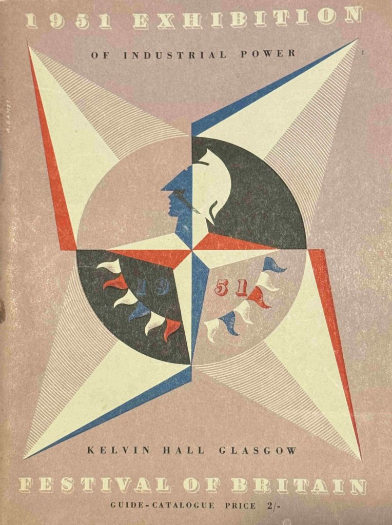 The guide book cover for the 1951 Exhibition of Industrial Power at the Kelvin Hall, Glasgow: