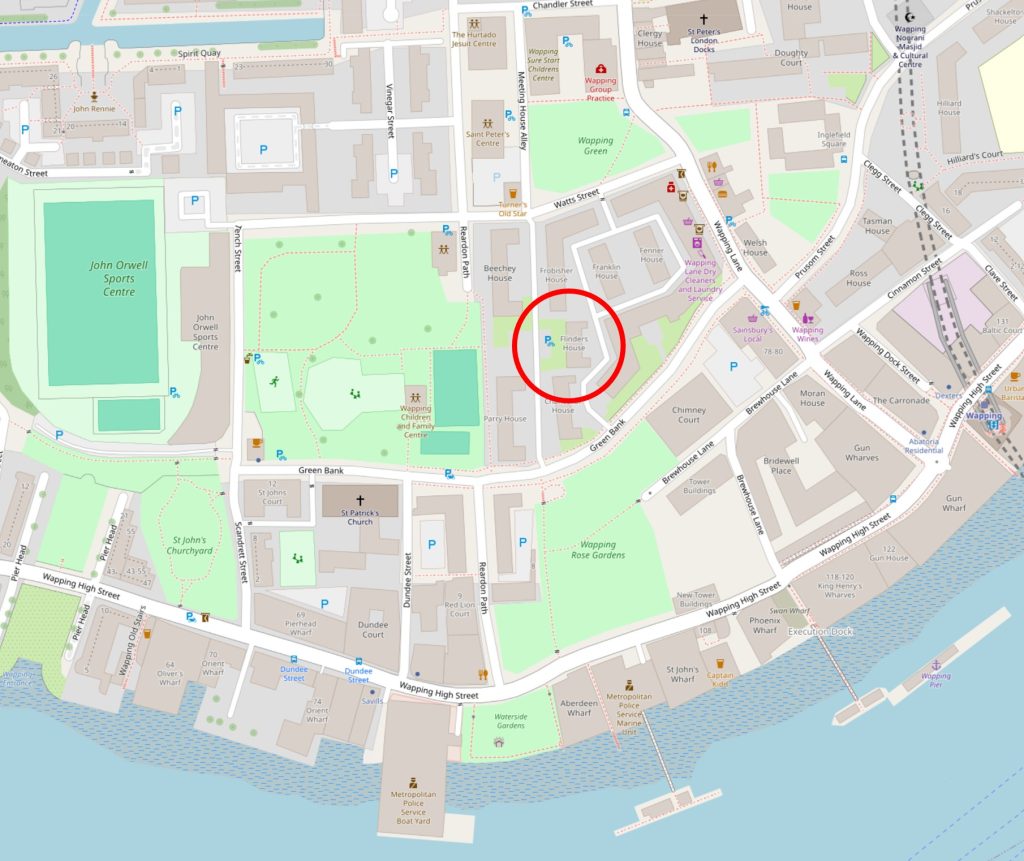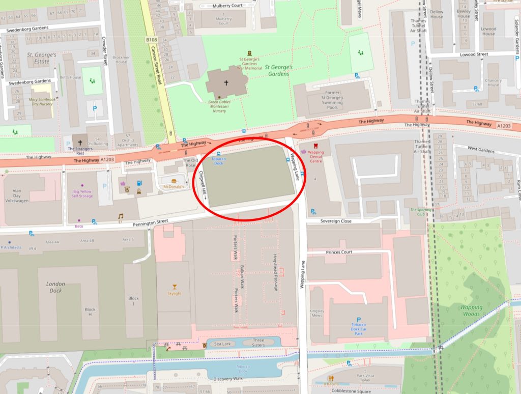 The location of the empty and derelict land in Wapping (© OpenStreetMap contributors):