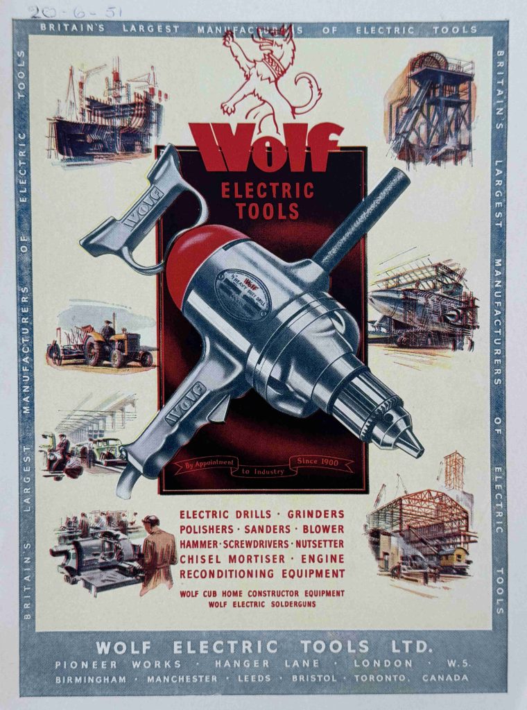 As with all the other exhibition guidebooks, the one for Glasgow included a range of colour adverts for companies who had provided their products for exhibition, or who were involved in the theme of the exhibition, so we have Wolf Electric Tools: