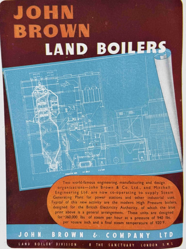 John Brown shown in the following advert was a major Scottish industrial company, which included a significant presence in marine engineering and ship building. The company built multiple war ships and the liners Queen Elizabeth and Queen Elizabeth 2.
