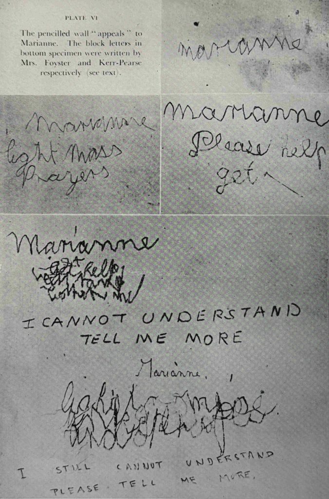 One of the phenomena witnessed during the Foyster’s time in the rectory was wall writing, where appeals were made to Marianne (the wife of Rev. Foyster):