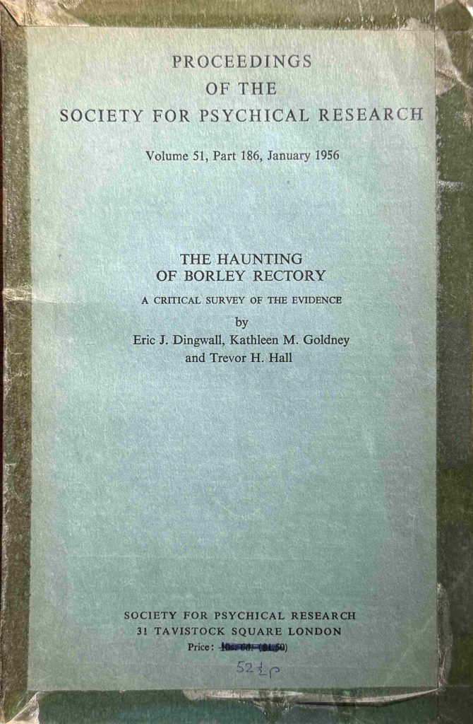 In 1956, the Society for Psychical Research (still going and “Founded in 1882, the SPR was the first organisation to conduct scholarly research into human experiences that challenge contemporary scientific models”), published the results of a “Critical Survey of the Evidence” into the haunting of Borley Rectory in their Proceedings (Volume 51, Part 186, January 1956):