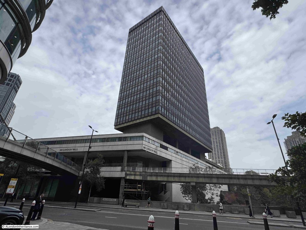 This will leave one remaining office tower from those that once lined London Wall, and this is further to the east on the southern side of London Wall and is shown in the photo below:
