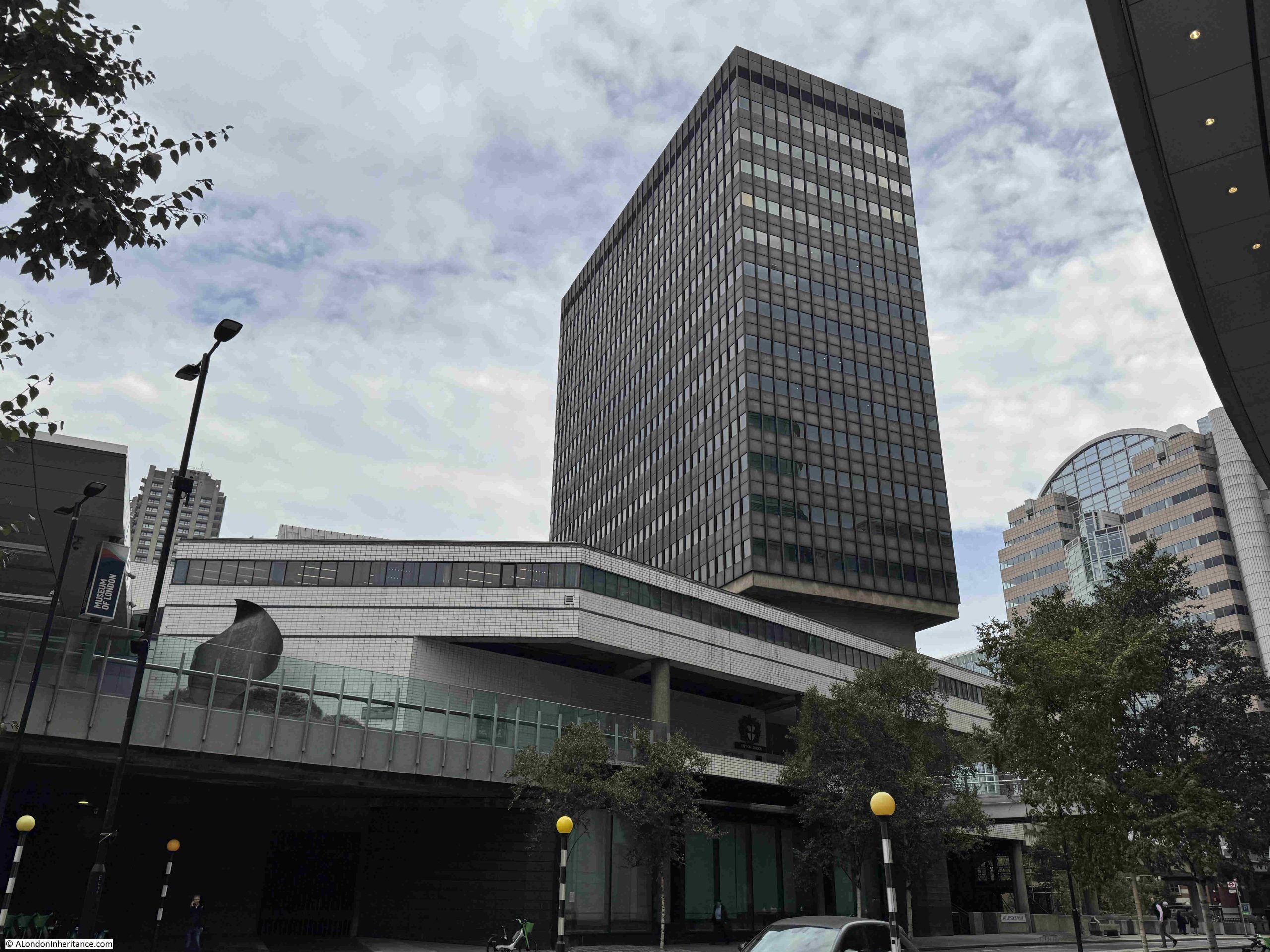Bastion House and the old Museum of London below, seen from the west: