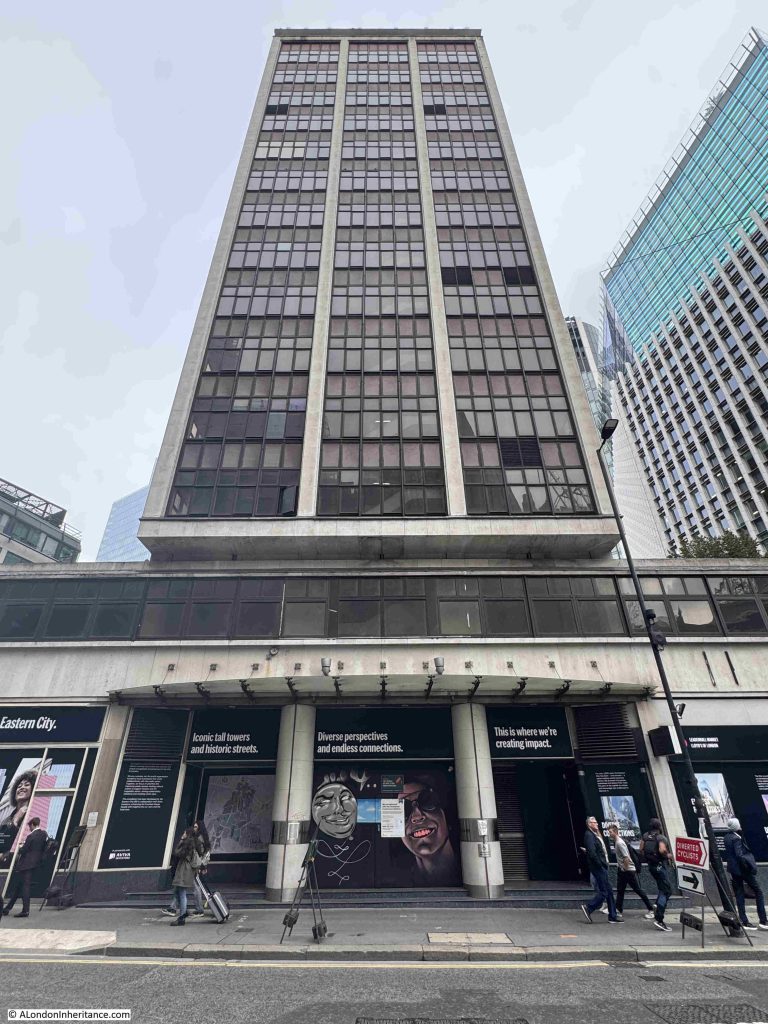 This block is now called City Tower, but the original name when completed in 1964 was Britannic House (although I am not sure if there is some confusion with another Britannic House, built as the head office of BP in 1967 next to Ropemaker Street, which has also changed name and is now City Point).