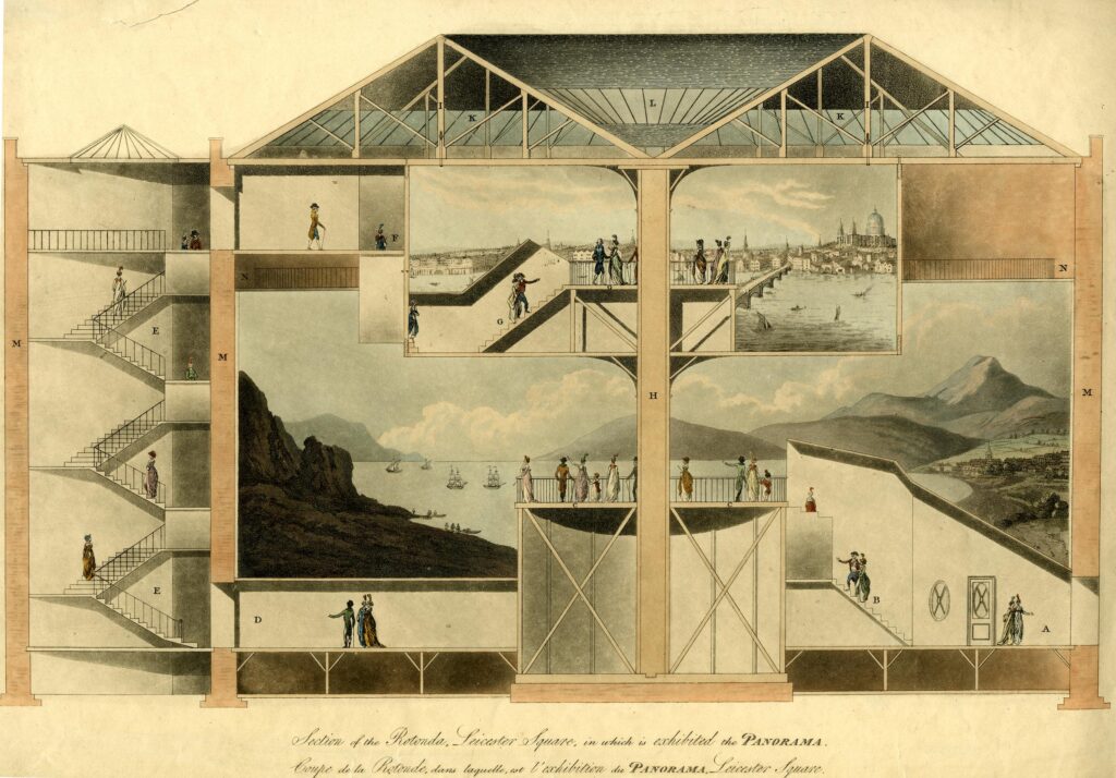 A cross section of the rotunda, with the internal panorama displays is shown in the following print (© The Trustees of the British Museum. Shared under a Creative Commons Attribution-NonCommercial-ShareAlike 4.0 International (CC BY-NC-SA 4.0) licence.):