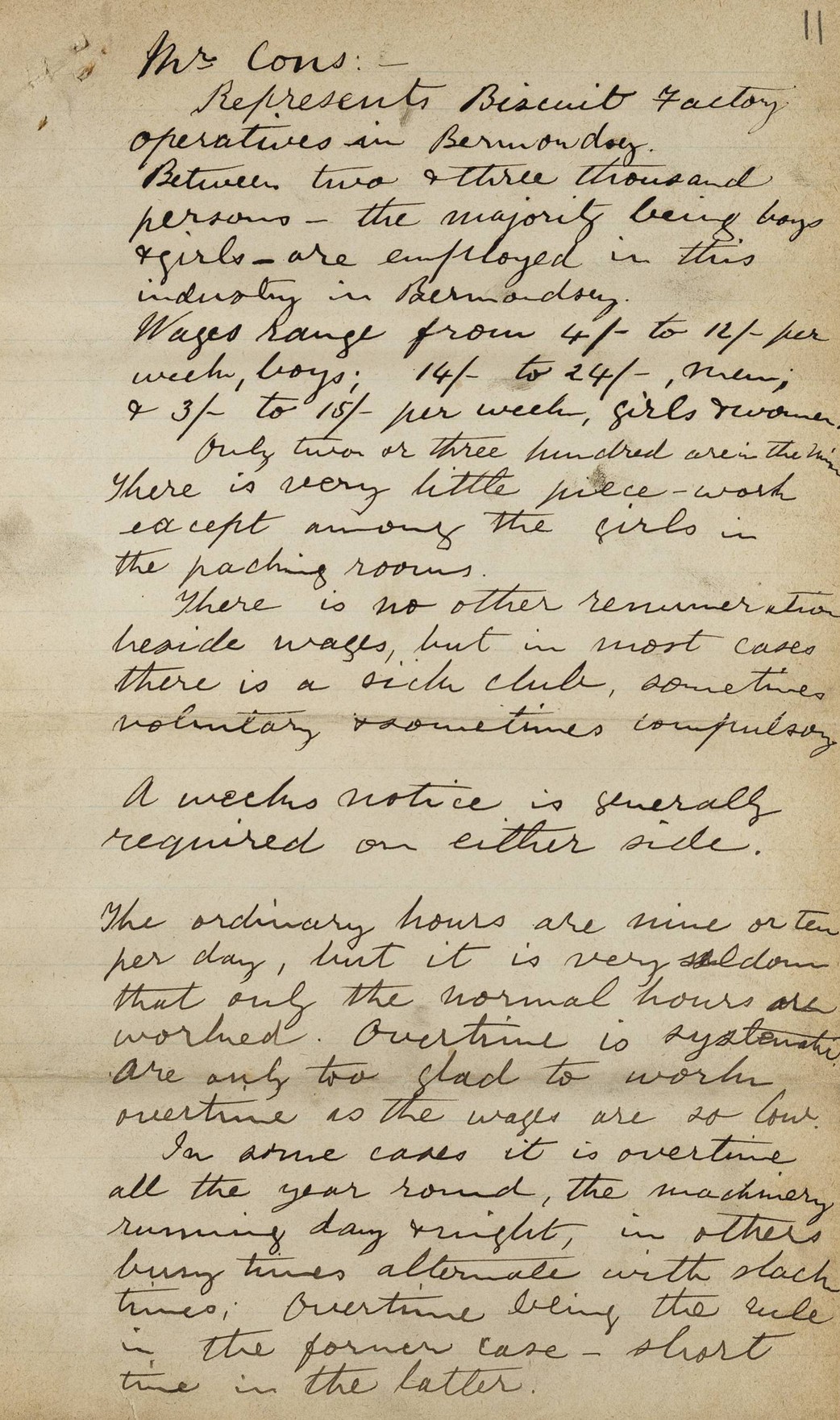 I cannot decode the name at the top, however they “Represents Biscuit Factory operatives in Bermondsey. Between two and three thousand persons – the majority being boys and girls – are employed in this industry in Bermondsey.