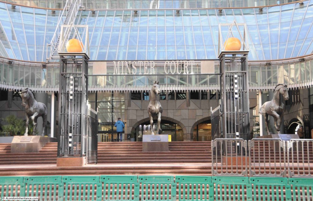 The Three Bronze Horses by Althea Wynne are a stand out feature of Minster Court, and hopefully the three buildings have a long term future, although the size of the land they occupy must be a tempting opportunity for another large, tall City tower.