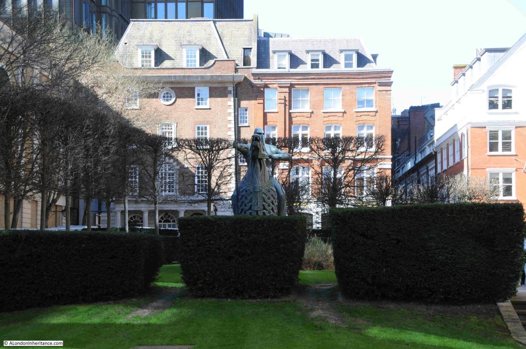 The Gardener is in the space between Brewers Hall and London Wall, and was commissioned by the Trees, Gardens and City Open Spaces Committee of the Corporation of London.