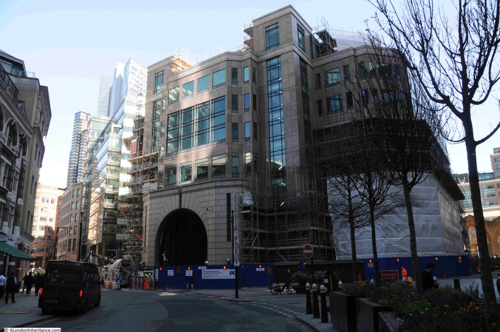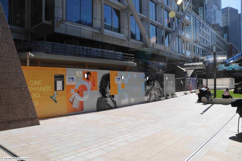 This work should be somewhere withing the Broadgate complex, however the location shown on the map is within the large area of building works on the western side of Broadgate, so I did not have any luck in finding the sculpture, which is probably somewhere within or around the building shown in the following photo: