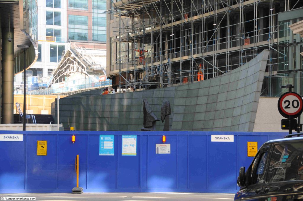 I have photographed this sculpture before, but when I arrived in March 2026, Broadgate Venus had gone, with hoardings and fencing lining the area where she was to have been found: