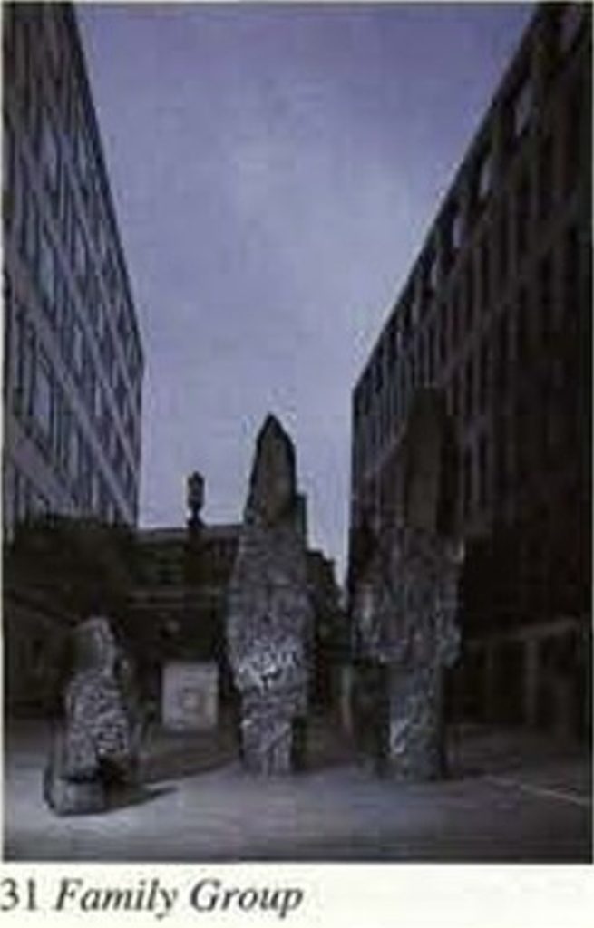 Family Group on the map, is shown to the west of Exchange Square, but this area was also protected by hoardings, and from Exchange Square there was no view of this work.