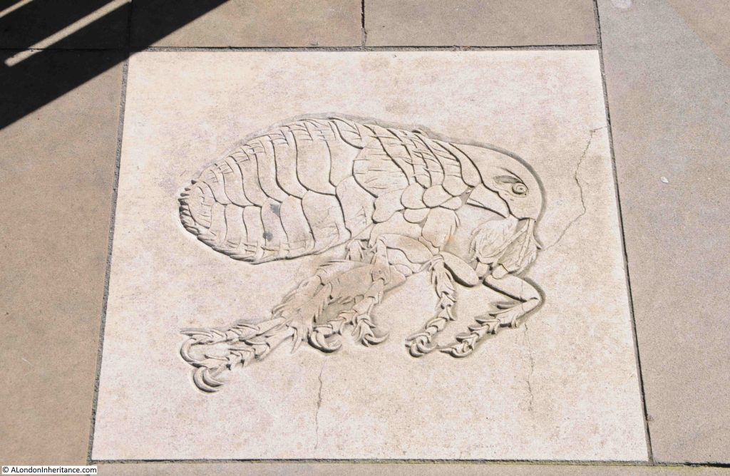As well as the Great Fire, the other significant event in both Pepys and the life of London in the 1660s was the Plaque of 1665, and this is also illustrated in a couple of the paving slabs:
