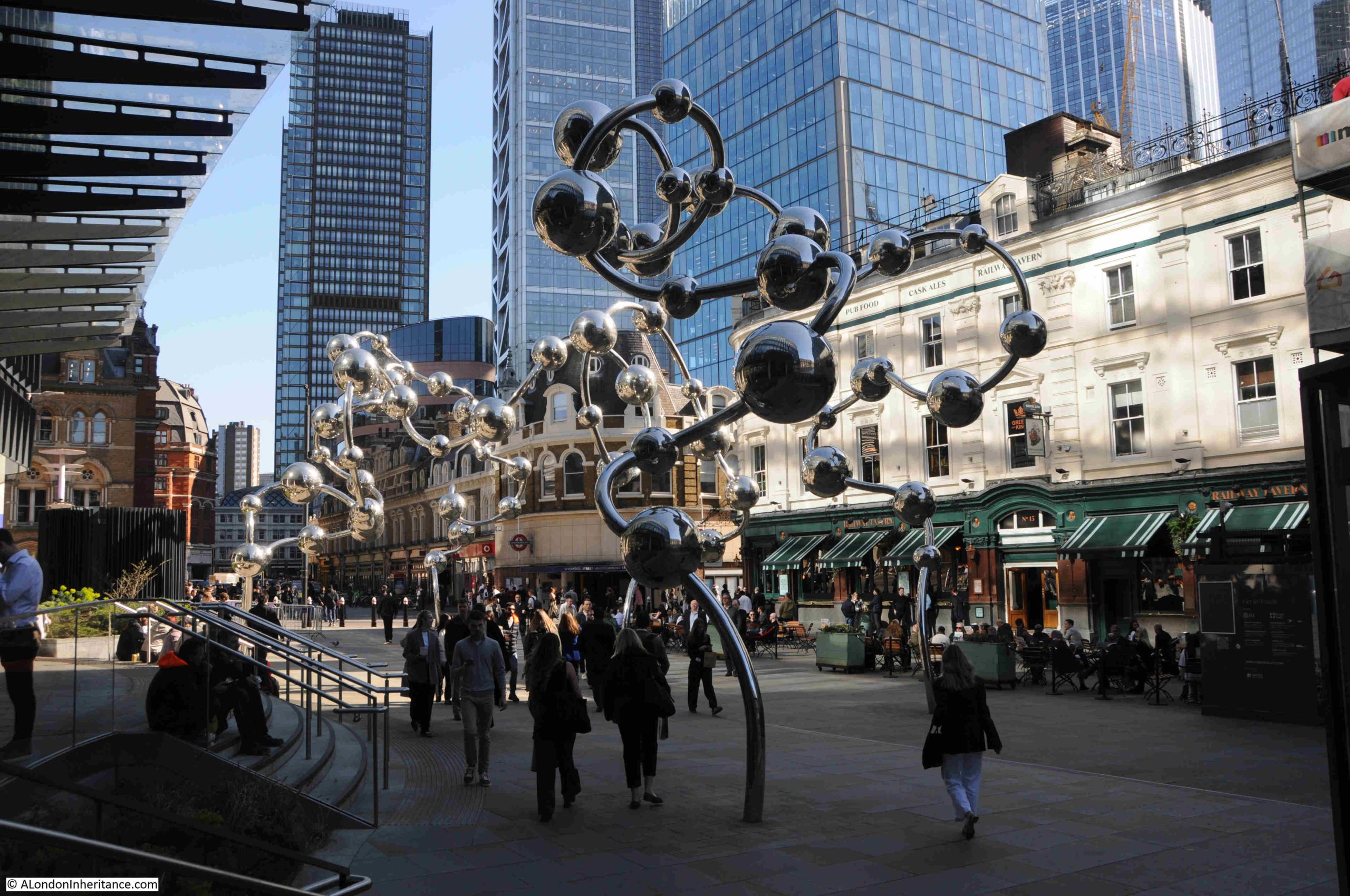 You cannot miss this large work, which can be found in the Exchange Square – a unique City square as it is at the end of the Liverpool Street train shed, and provides an elevated look down onto the station’s platforms.