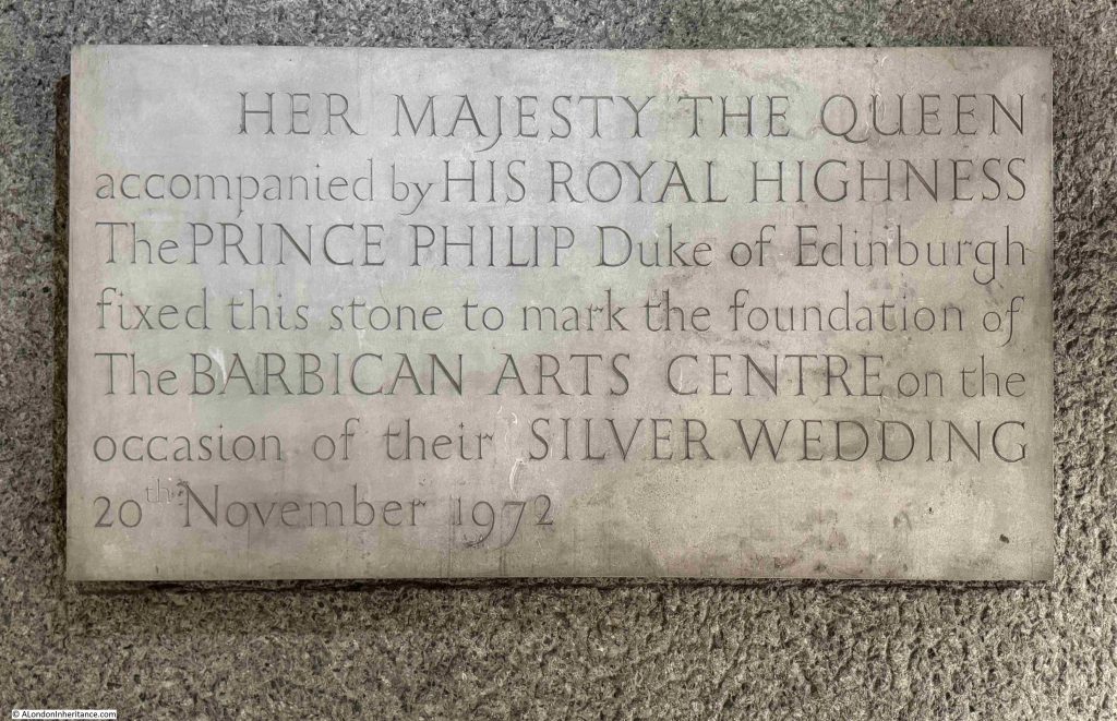 The Barbican Centre is referred to as the Barbican Arts Centre in the above plaque, and on the 20th of November 1972, the Queen unveiled the foundation stone for the new Barbican Arts Centre.