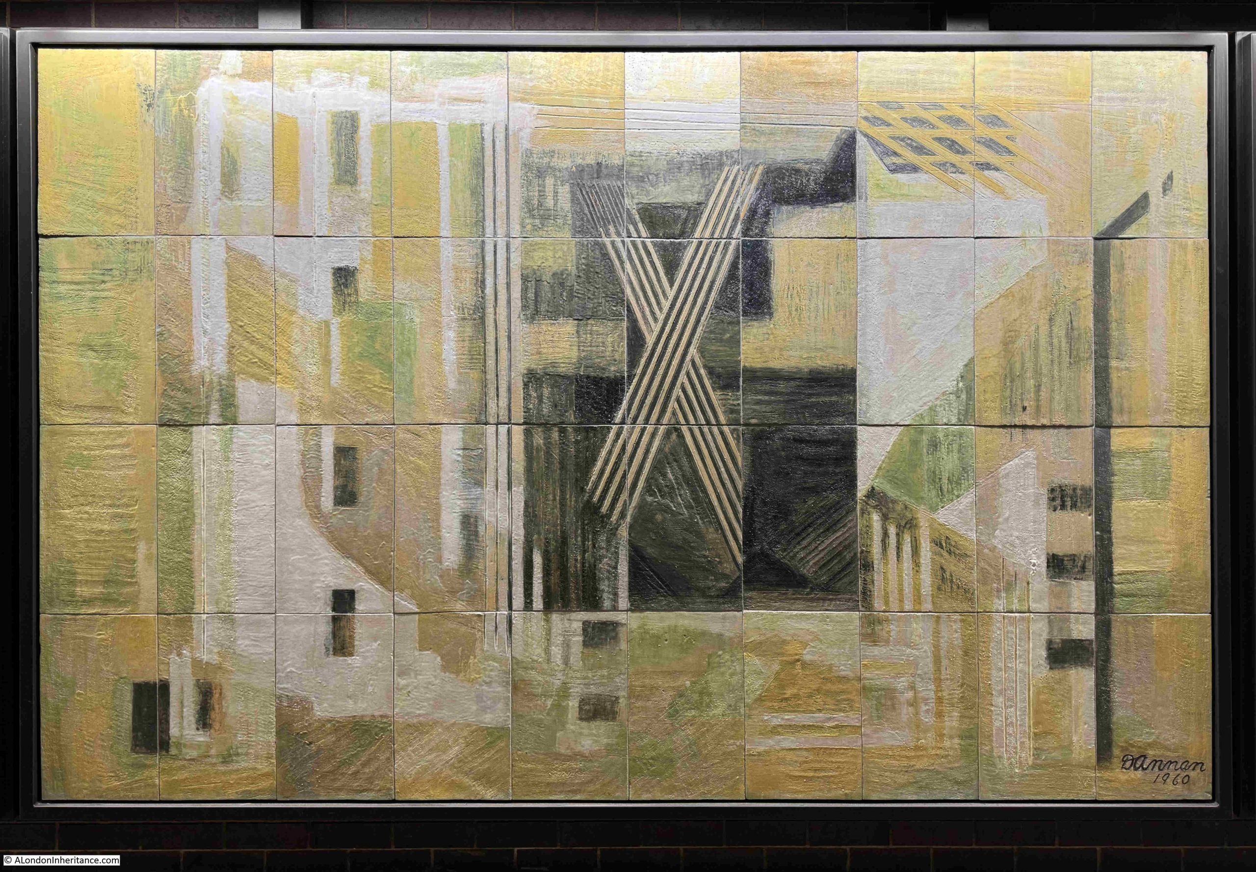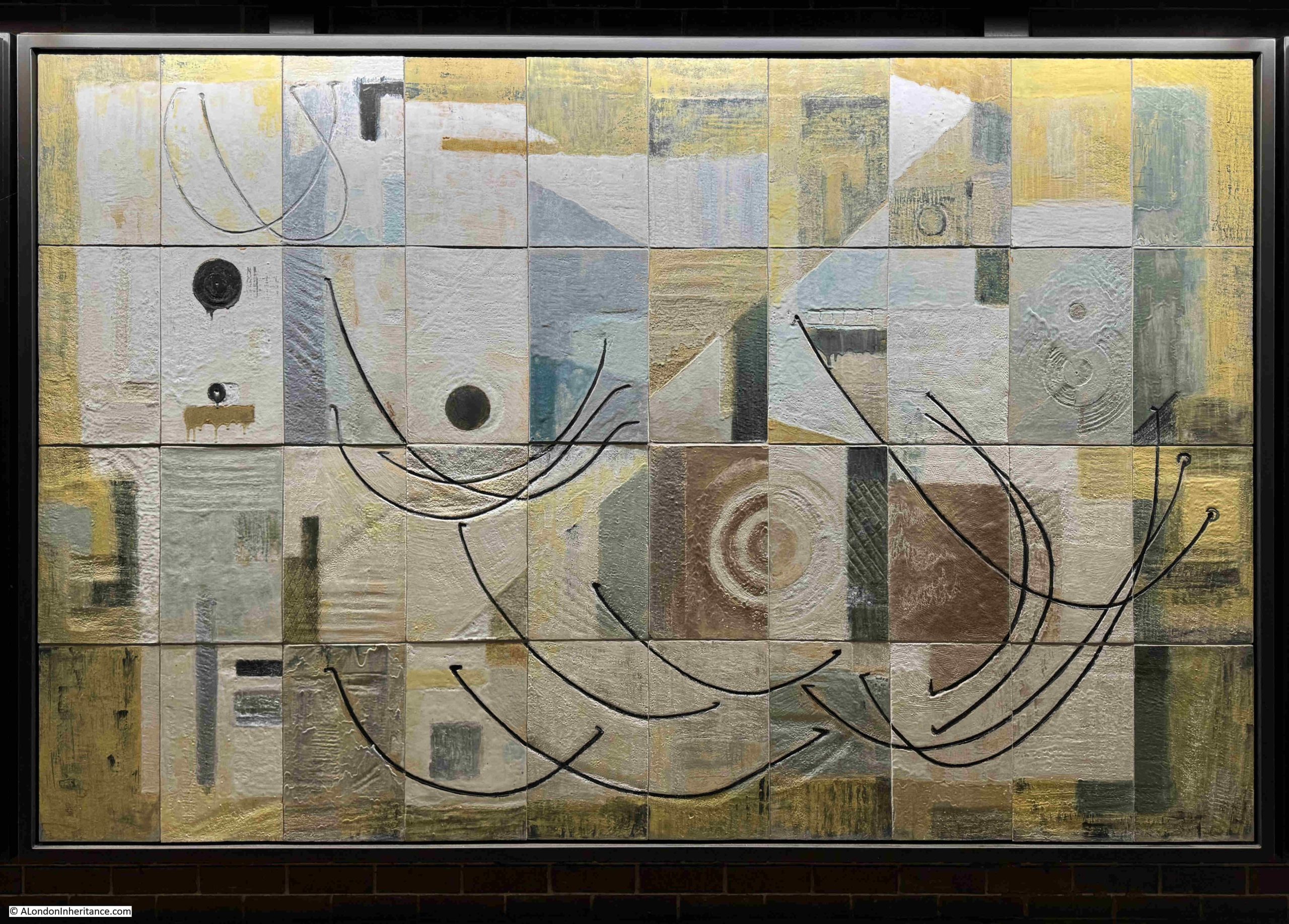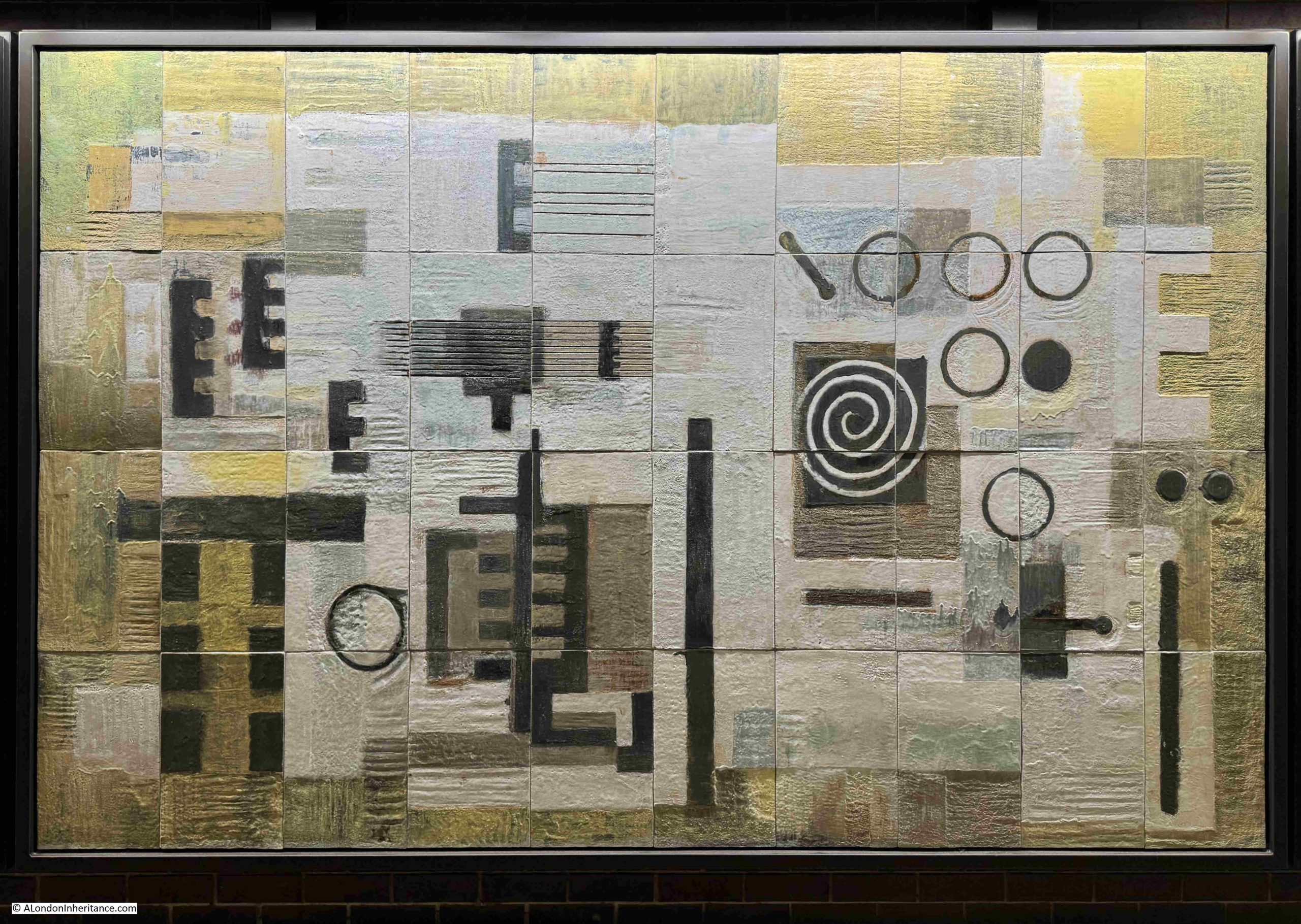 She worked in a number of tactile mediums such a pottery, mosaics, and, as can be seen in the Barbican, murals, which were created by hand scoring the design into tiles of wet clay. These were then fired, decoration and coloured glaze were then added, the tile was fired again, and the individual tiles were then assembled to create the completed mosaic.
