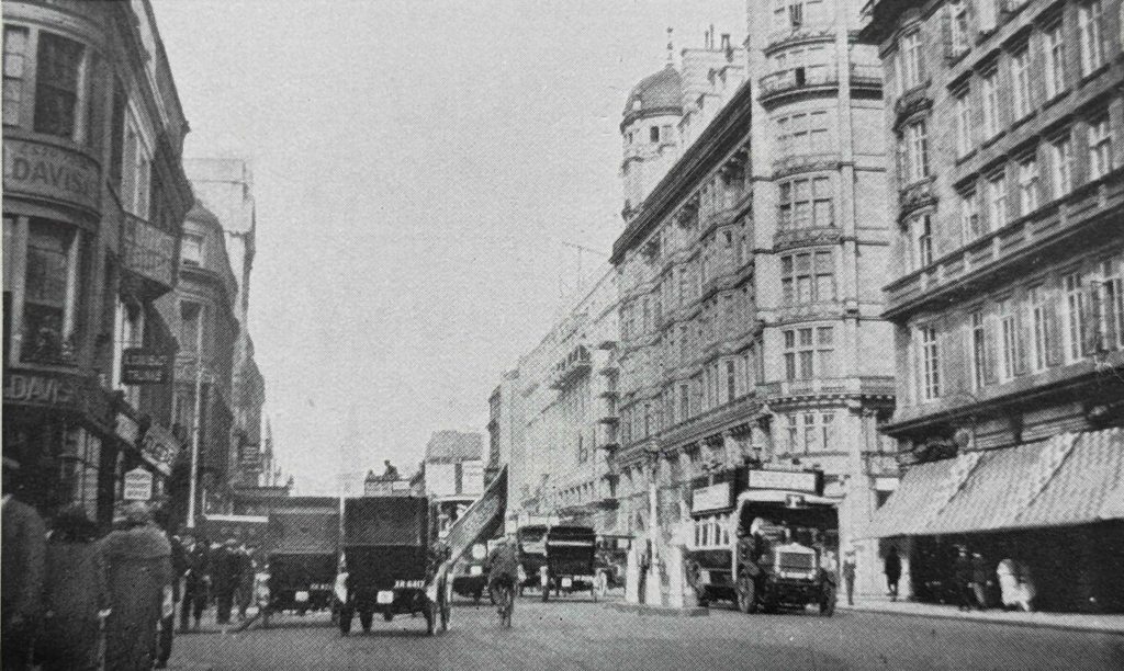 The following photo shows the “Carlton Hotel and the Kinnaird House, Haymarket and Pall Mall”: