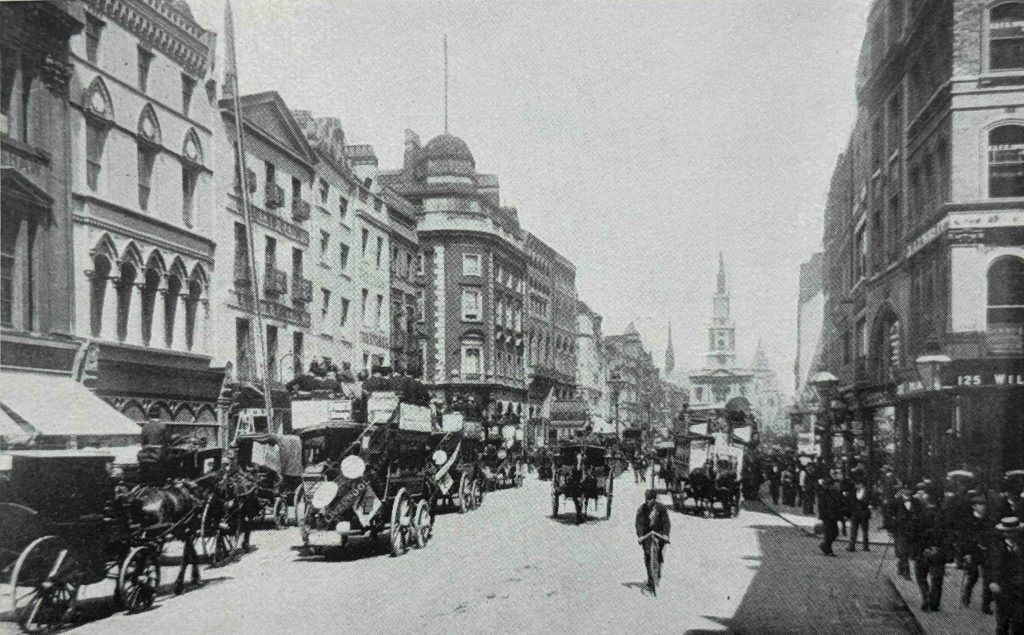 This is a 1901 view along Cornhill from the Royal Exchange:
