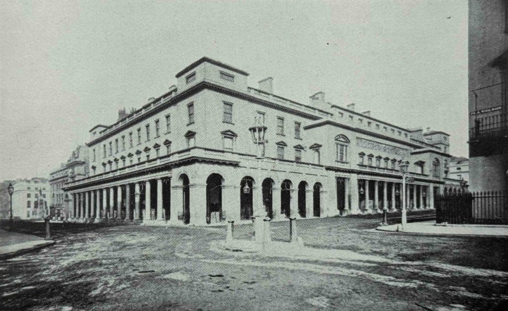 The following photo is much earlier than the date range in the book’s title of 1897 to 1927. This is the old His / Her Majesty’s Theatre on the corner of Haymarket and Pall Mall, which had been destroyed by fire in December 1867, so the photo must be from 1867 or earlier: