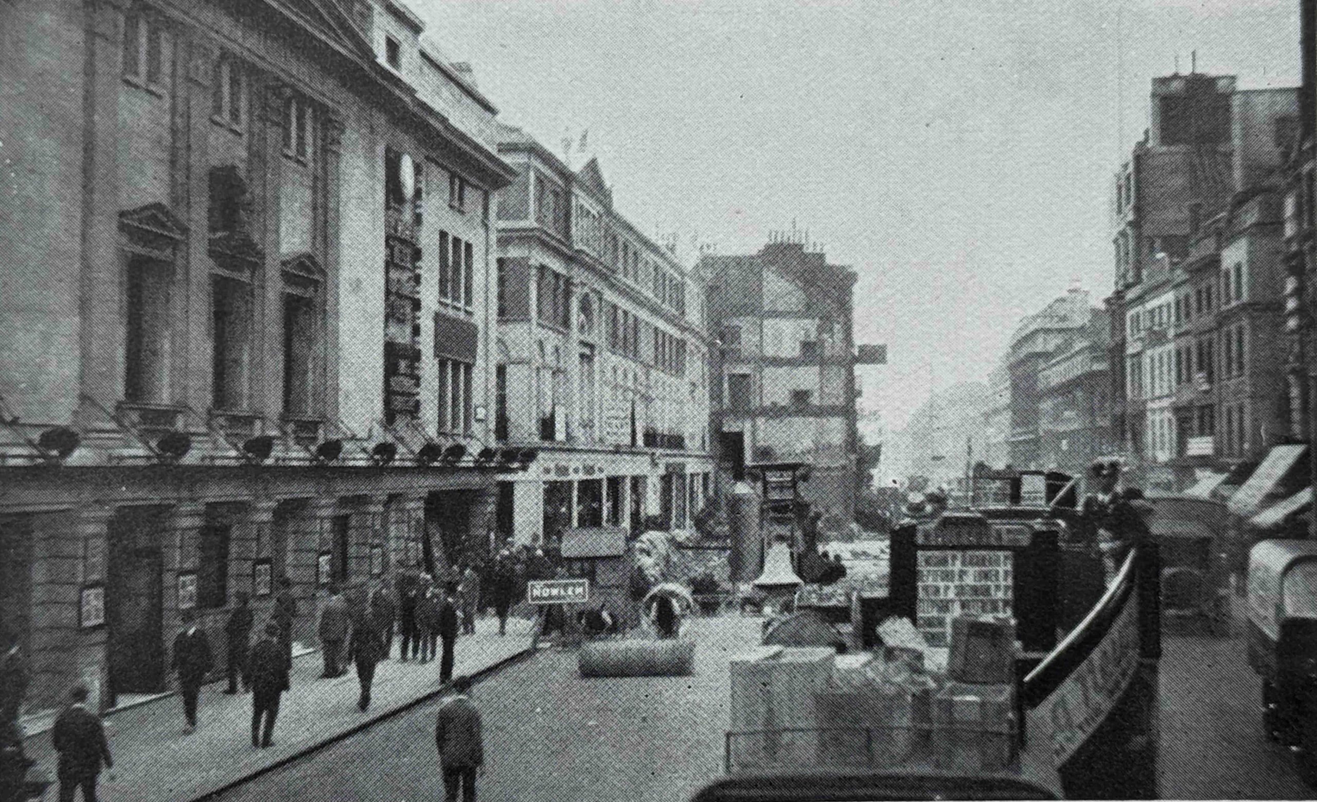 The demolition and new build of the Tivoli was part of the scheme to widen the Strand, and the end of another building which will soon be demolished as part of this scheme can be seen further along the street.