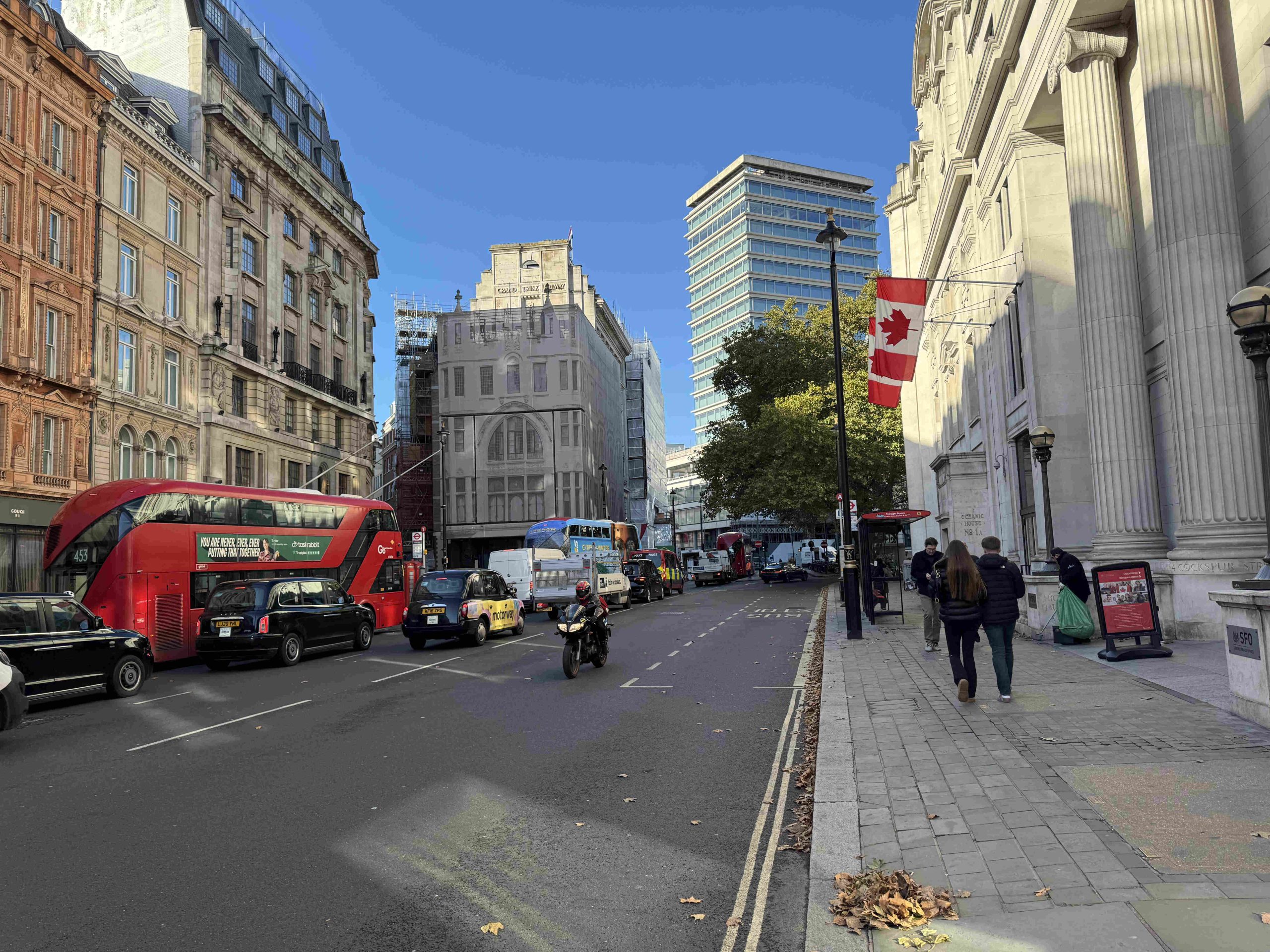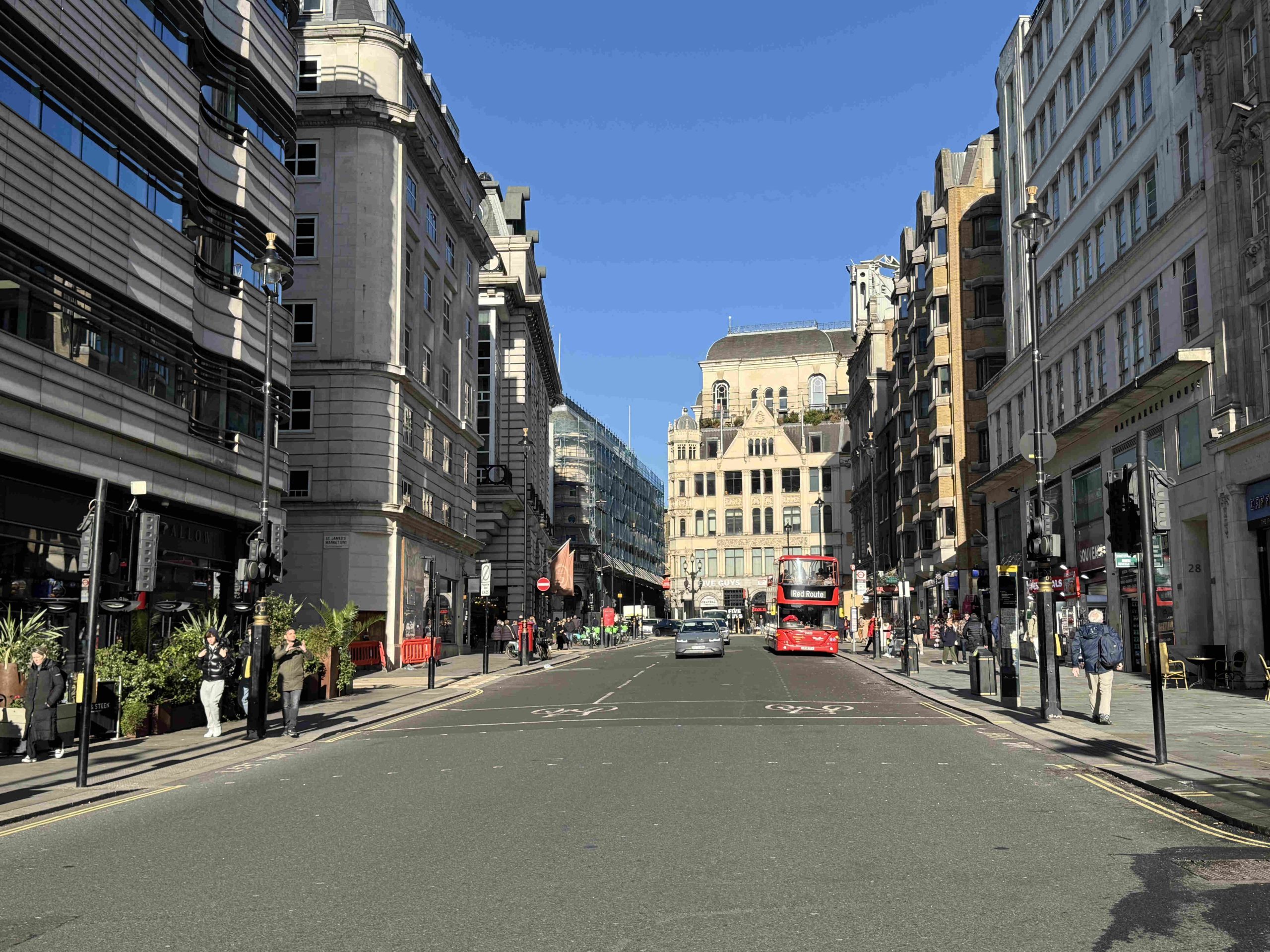 In the above photo there is a sign for “Wales” on the left, and this is the Prince of Wales Theatre, so the street on the right is Rupert Street and Piccadilly Circus is in the distance.