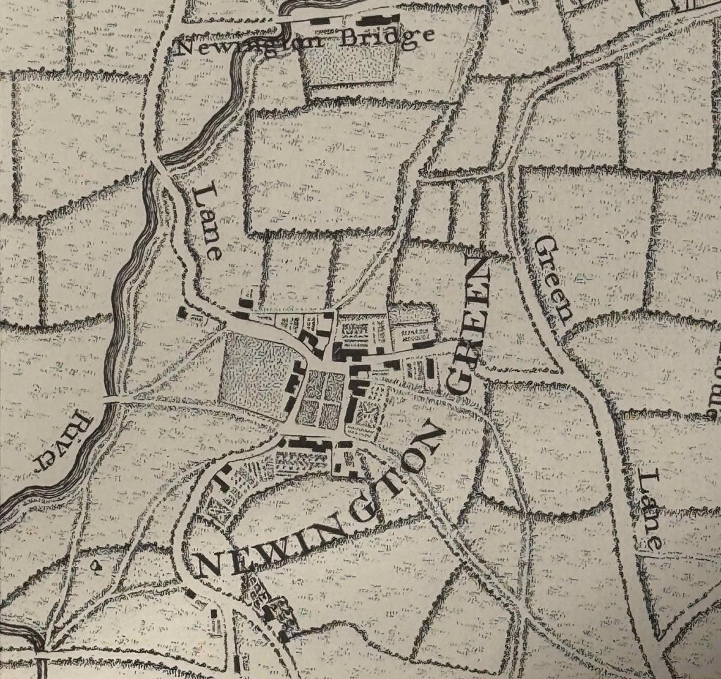 Too much “may” and “probably” in the last paragraph, but what is clear is that by the middle of the 18th century, Newington Green was a well defined square, with roads along each side, and seven roads / tracks leading into the green.