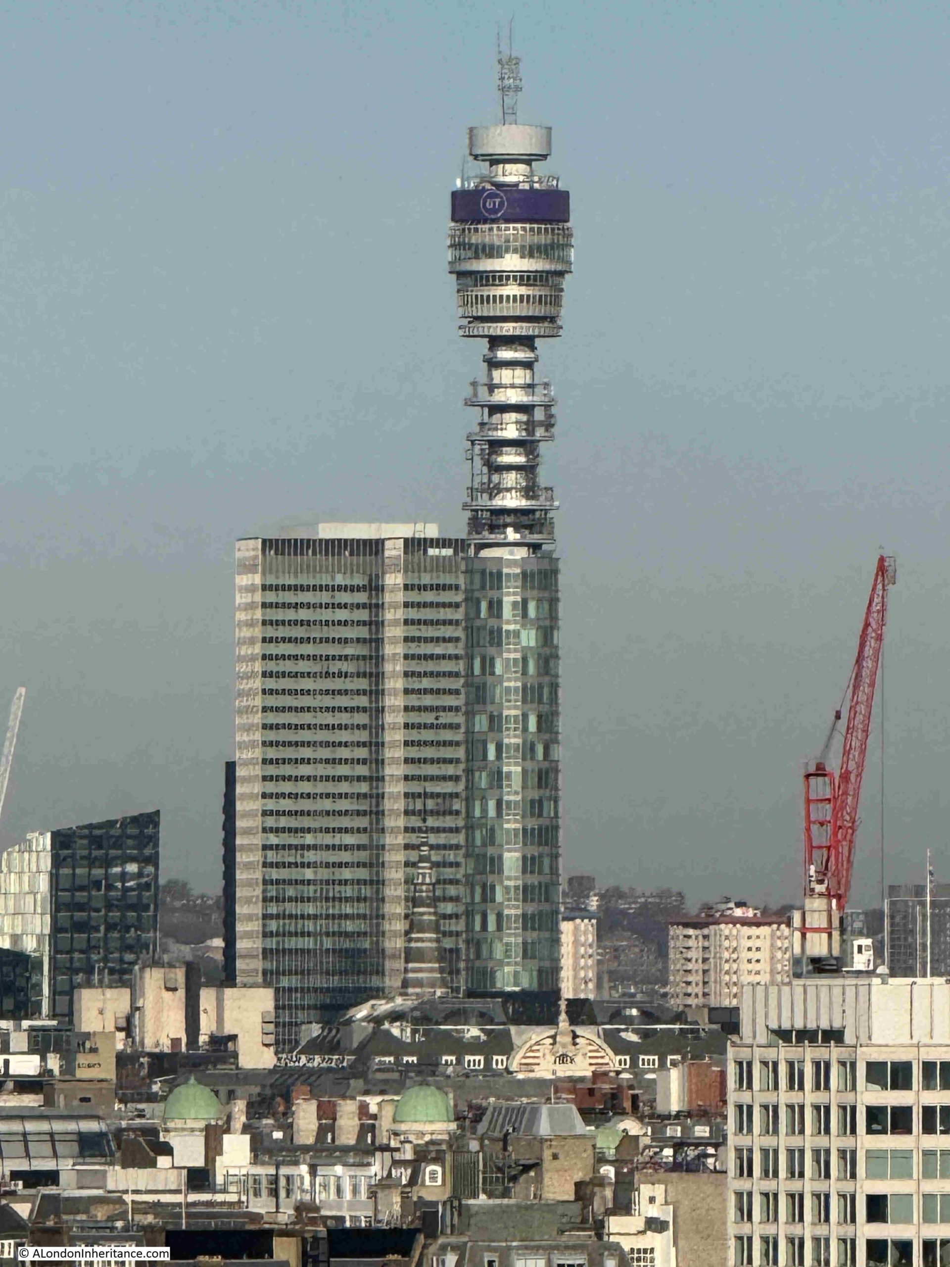 Close-up of the Post Office Tower with Euston Tower in the background: