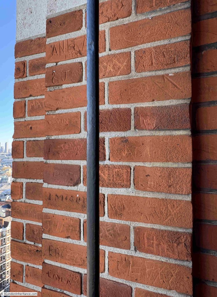 Unsurprisingly, the brick walls surrounding the viewing area at the top of the tower are covered in the names and initials of previous visitors: