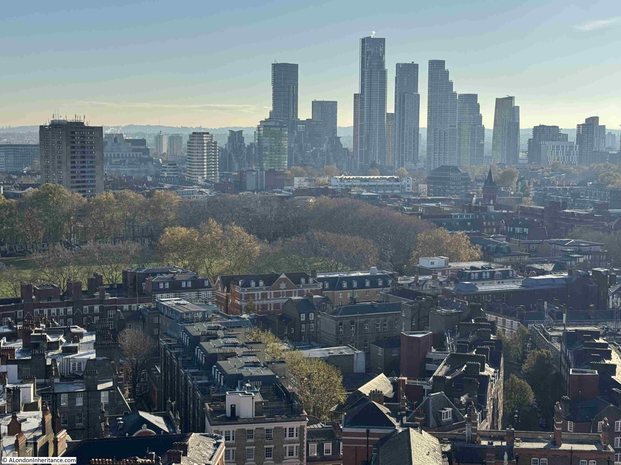 As well as Nine Elms, another part of London that has, and continues to change, is the Isle of Dogs, and from the tower of Westminster Cathedral we can see the towers that continue to be built in this part of east London. The change has been such as the tower with the pyramidal roof top, One Canada Square, the original tower at the development is now almost obscured by the other towers that have since been built: