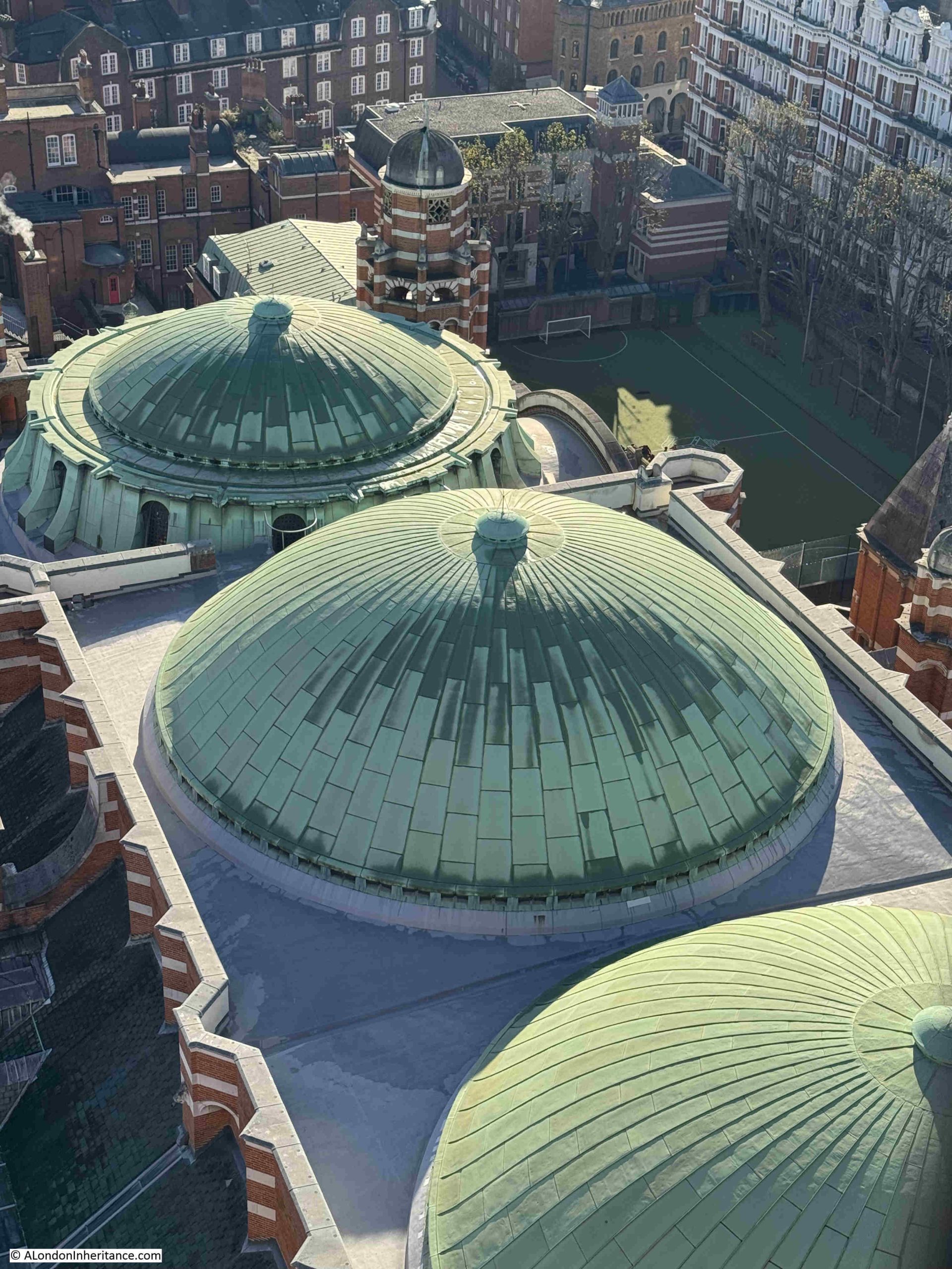 The following photo shows a close-up view of the domes along the roof. There are three of these, and whilst they look impressive from above, internally they provide a dramatic addition to the roof space, again following the style of Byzantine – Christian architecture: