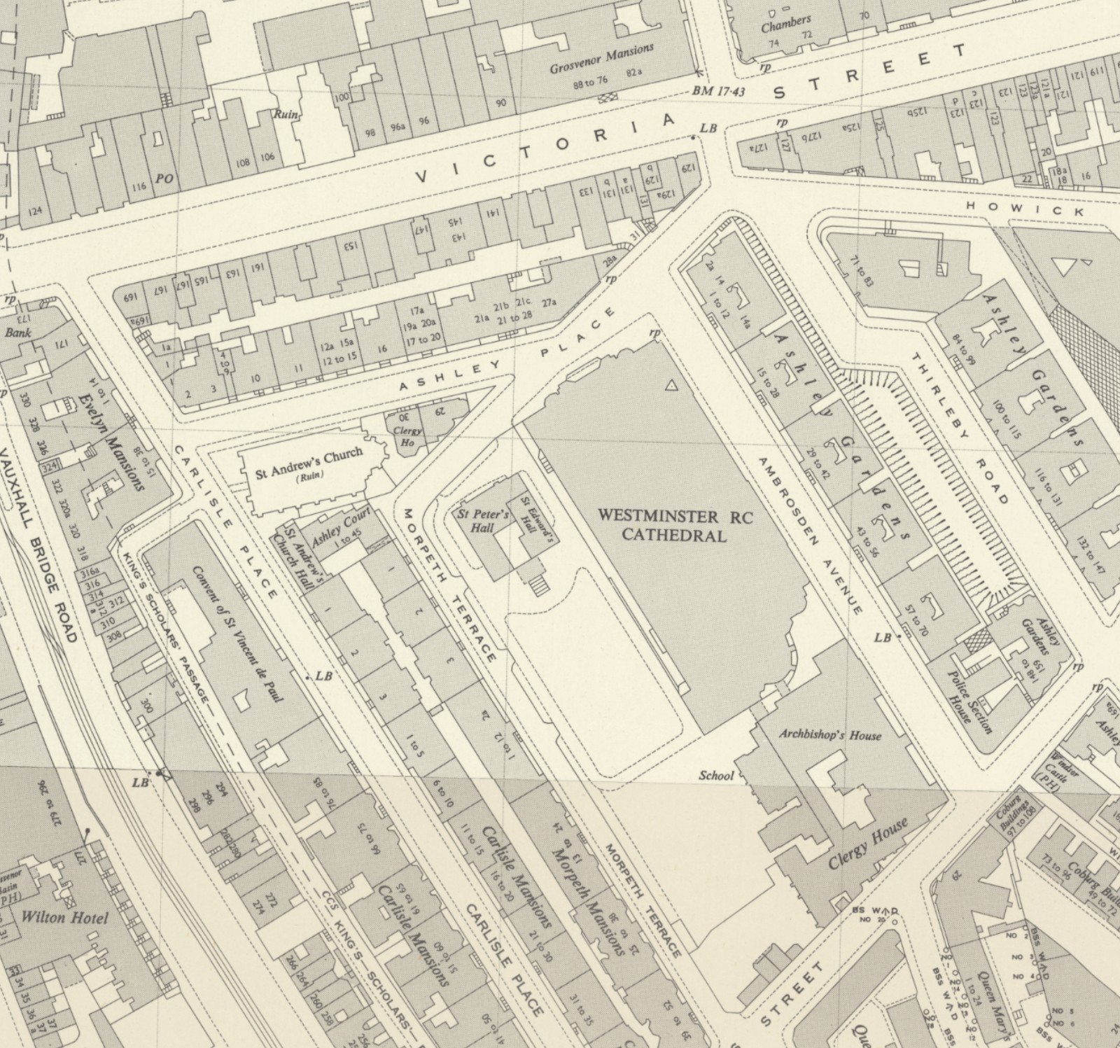 As I mentioned earlier in the post, when built, Westminster Cathedral was screened from Victoria Street by rows of terrace houses.